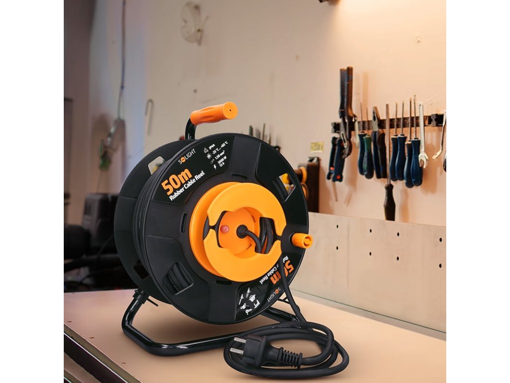 Prodlužovací kabel na navíjecím bubnu s délkou 50 metrů a jednou zásuvkou je ideální pro použití venku, na stavbách nebo v dílnách. Gumový kabel zajišťuje odolnost proti povětrnostním podmínkám a mechanickému namáhání. Produkt je navržen pro bezpečné a spolehlivé připojení stavebních, zahradních i méně náročných průmyslových zařízení.