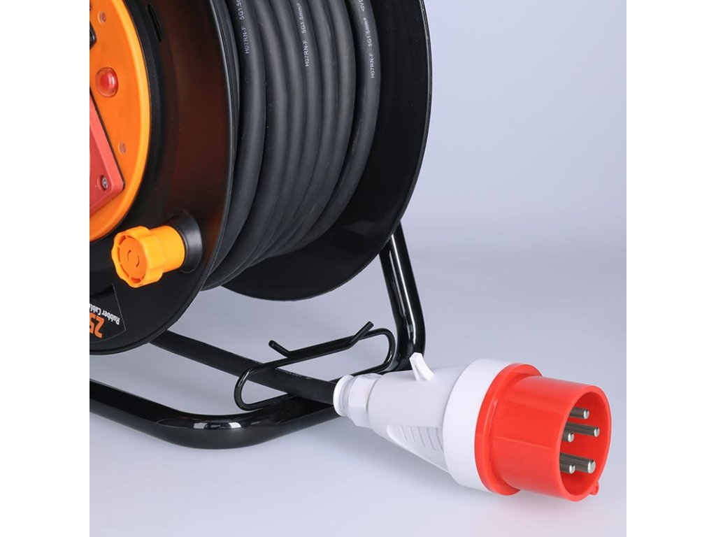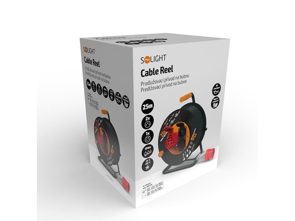 Solight prodlužovací přívod na bubnu, 3 zásuvky, 400V + 230V, 25m gumový kabel 5x1,5mm2, IP44