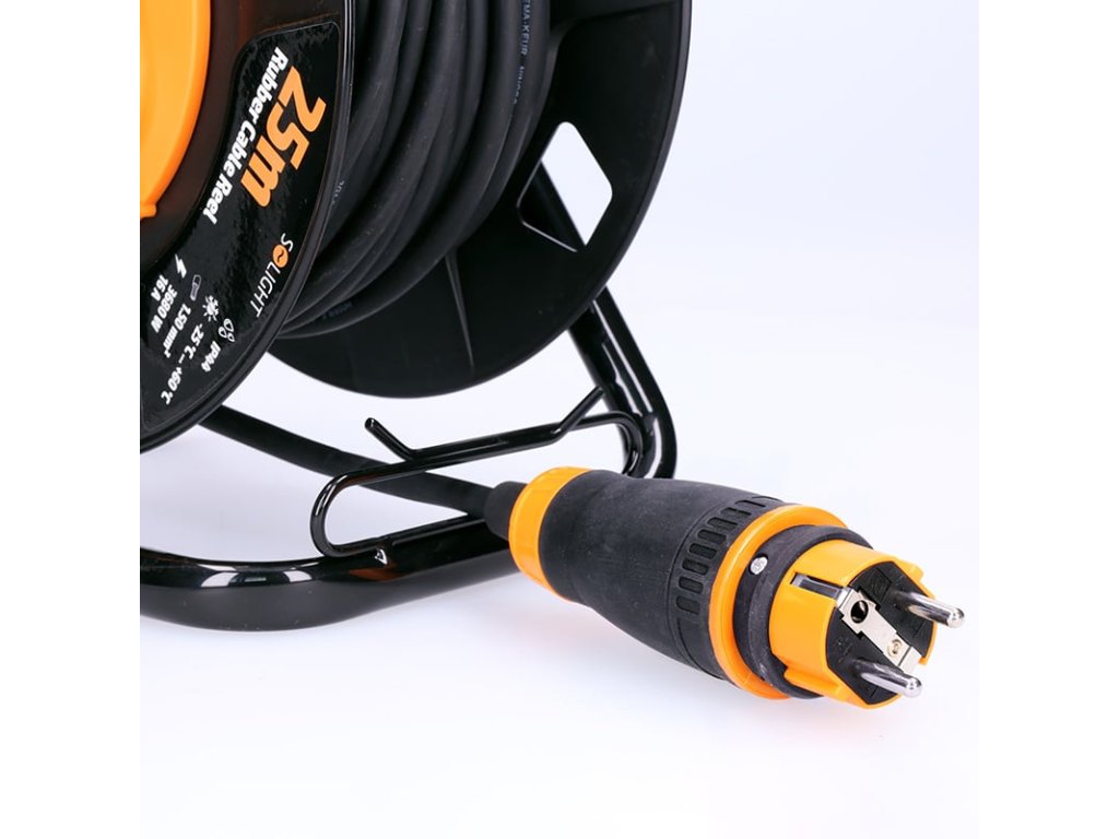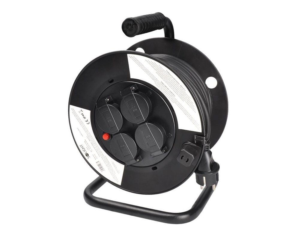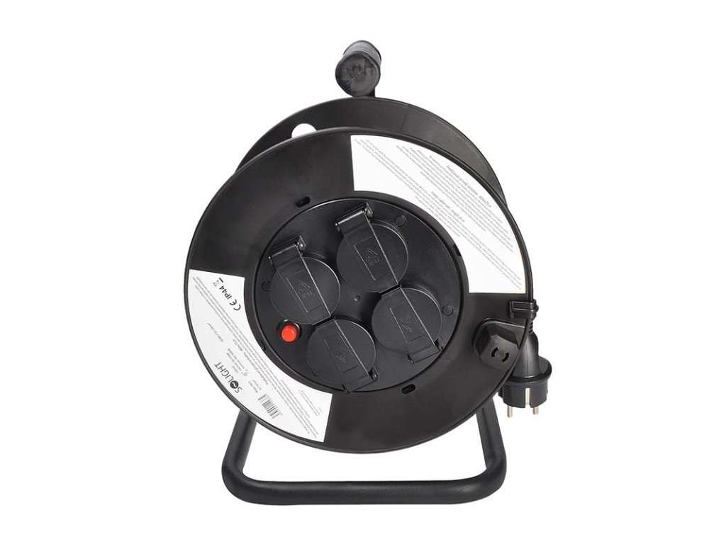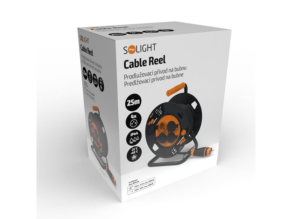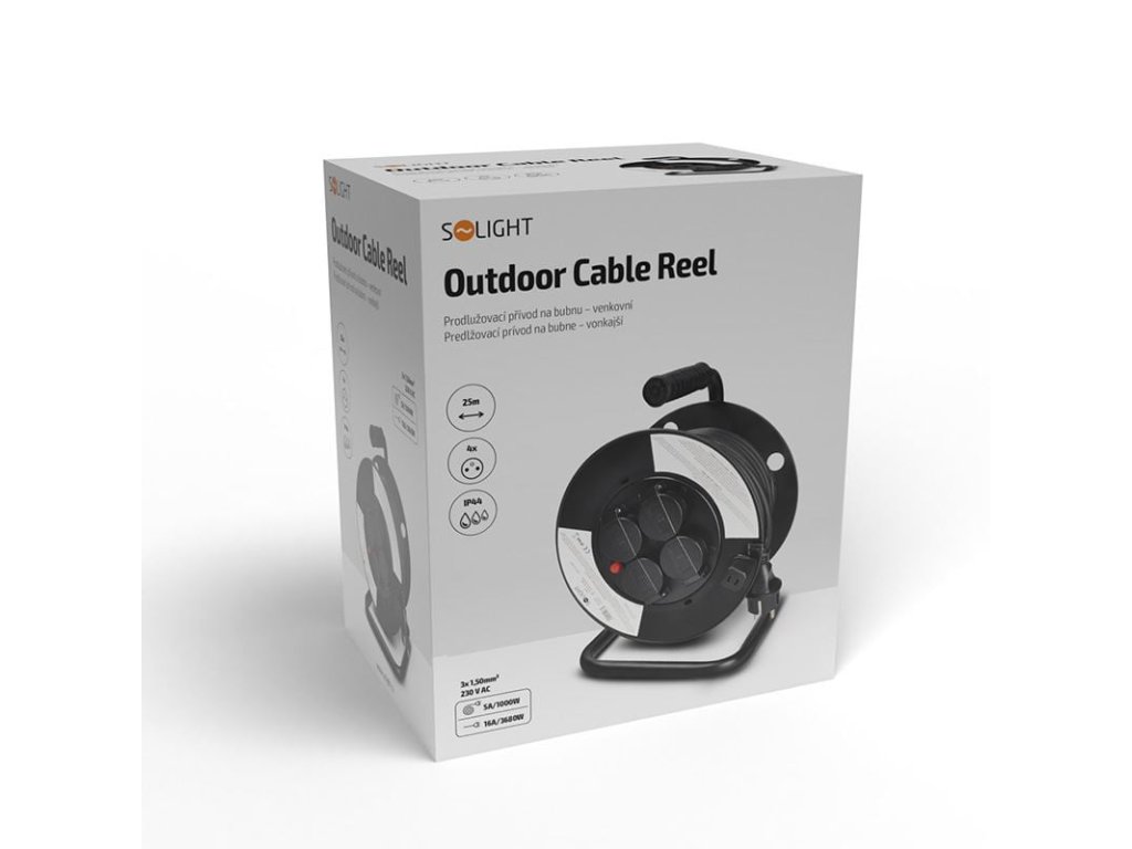 Solight prodlužovací přívod na bubnu, 4 zásuvky, venkovní, 25m gumový kabel, 3x 1,5mm2, IP44