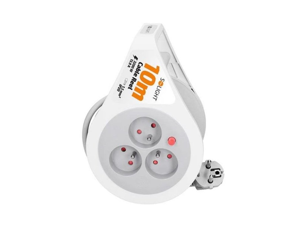 Solight prodlužovací přívod na bubnu 10m, 3 zásuvky, šedý kabel, 3x 1,5mm2