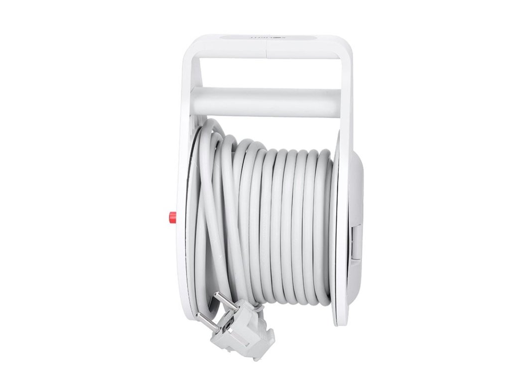 Přestože je buben malý a skladný, zvládne stejnou zátěž jako větší modely. Tři zásuvky s dětskými pojistkami jsou navíc chráněny i tepelnou pojistkou, která odpojí napájení při přetížení nebo při plné zátěži bez úplného odvinutí kabelu. 10 metrů délky poskytuje dostatek dosahu pro běžné i náročnější použití v interiéru.