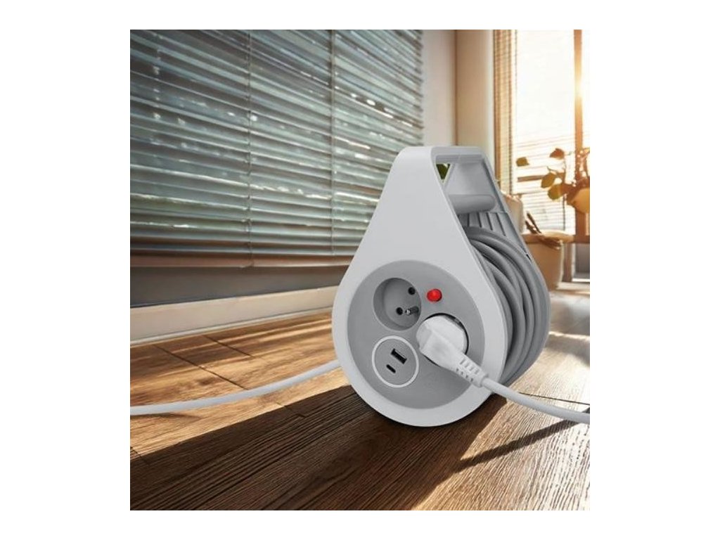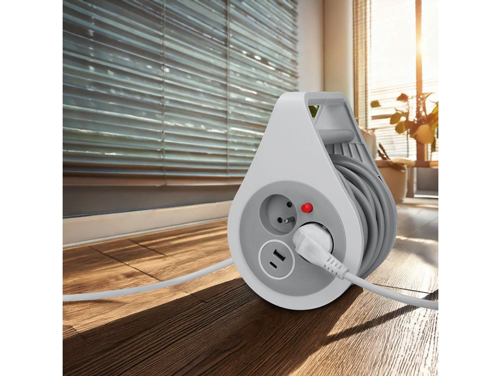 Moderní prodlužovací přívod v kompaktním těle nabízí nejen dvě zásuvky 230 V, ale také integrovanou USB nabíječku. Díky USB-A a USB-C portům můžete při práci pohodlně nabíjet telefon, tablet nebo přenosnou elektroniku bez nutnosti hledat adaptér. Elegantní design a světle šedé provedení z něj dělají i pěkný doplněk do každého interiéru.