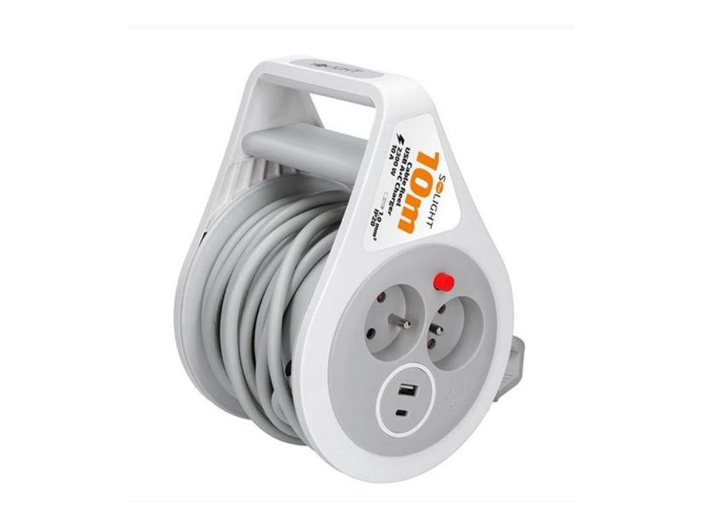 Prodlužovací přívod 10 metrů s navíjecím bubnem, USB A+C, 2 zásuvky