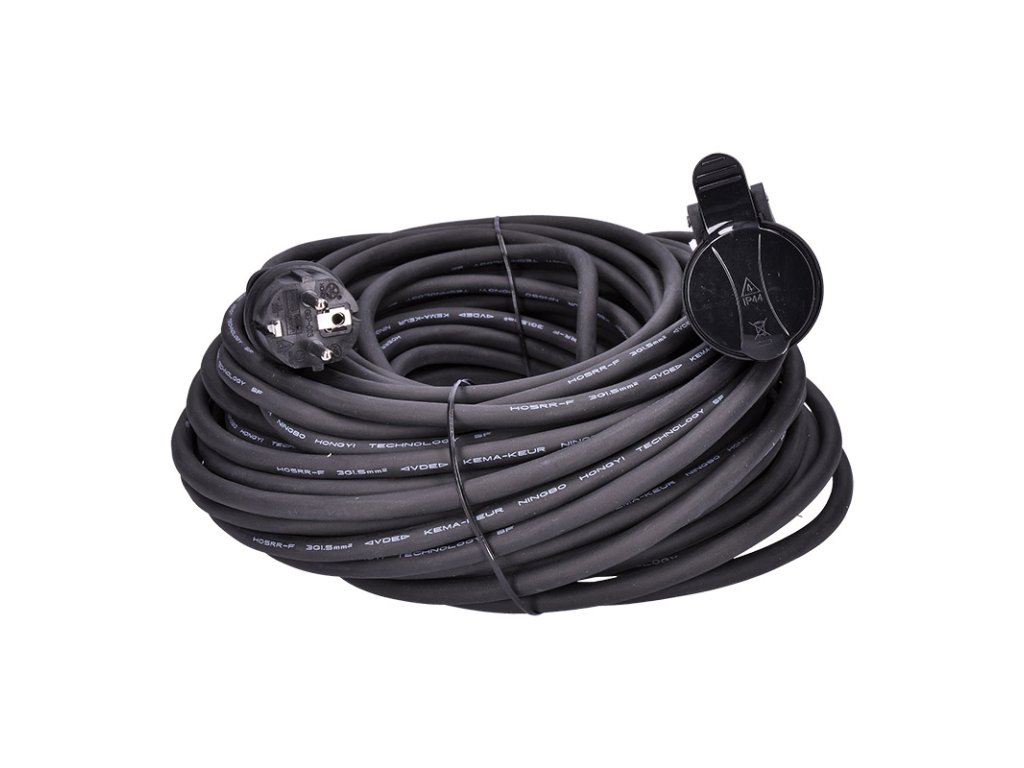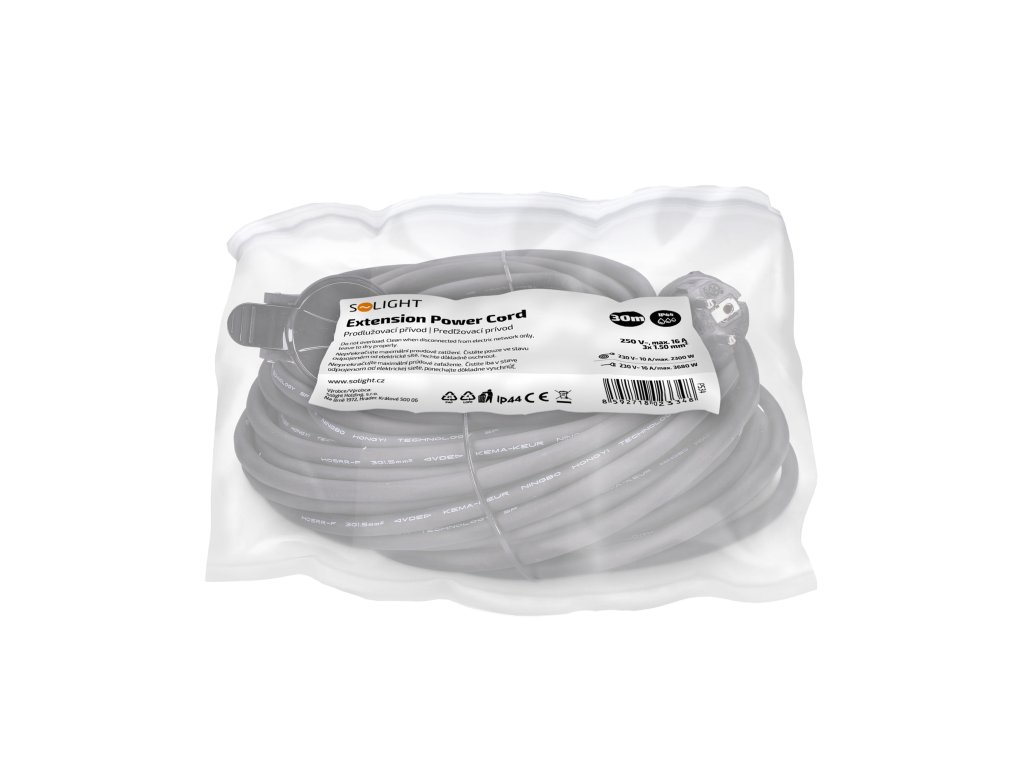 Solight prodlužovací přívod - spojka, 1 zásuvka, 30m, 3 x 1,5mm2, gumová, černá