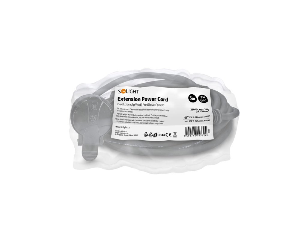 Solight prodlužovací přívod - spojka, 1 zásuvka, 5m, 3 x 1,5mm2, gumová, černá