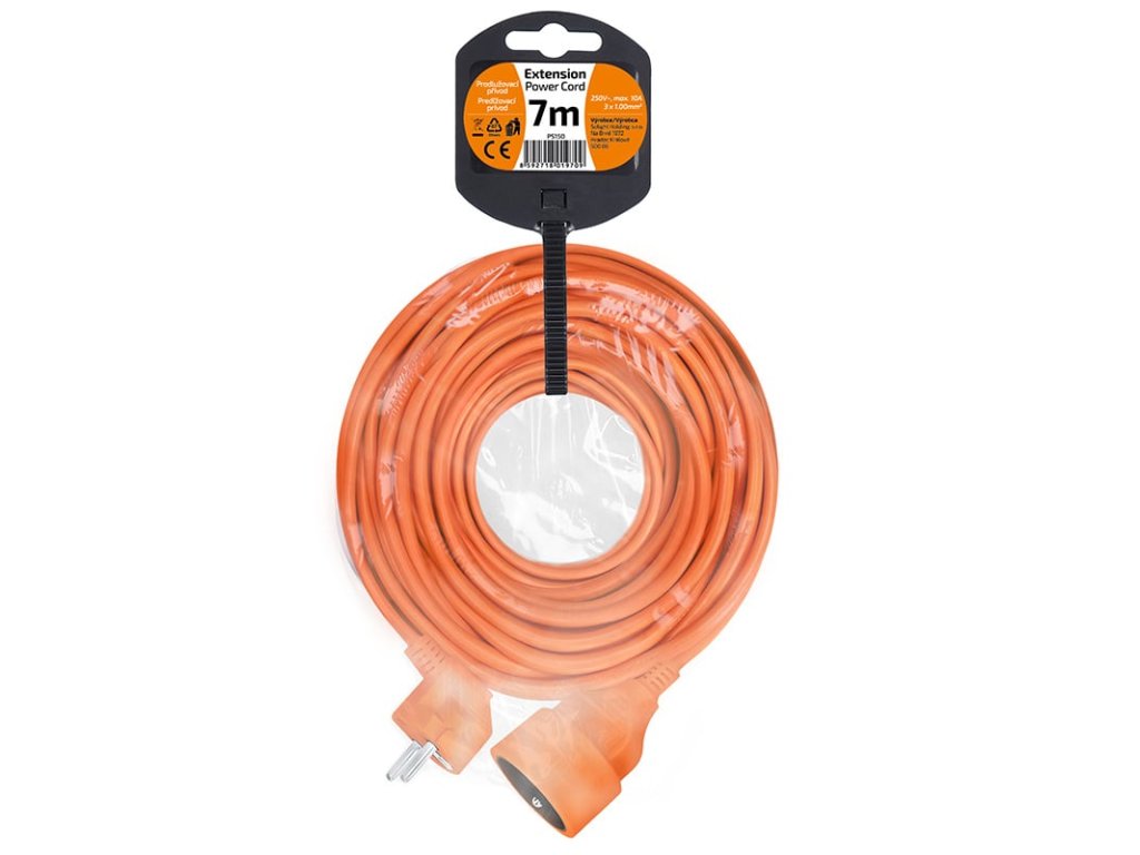 Solight prodlužovací přívod - spojka, 1 zásuvka, 7m, 3 x 1mm2, oranžová