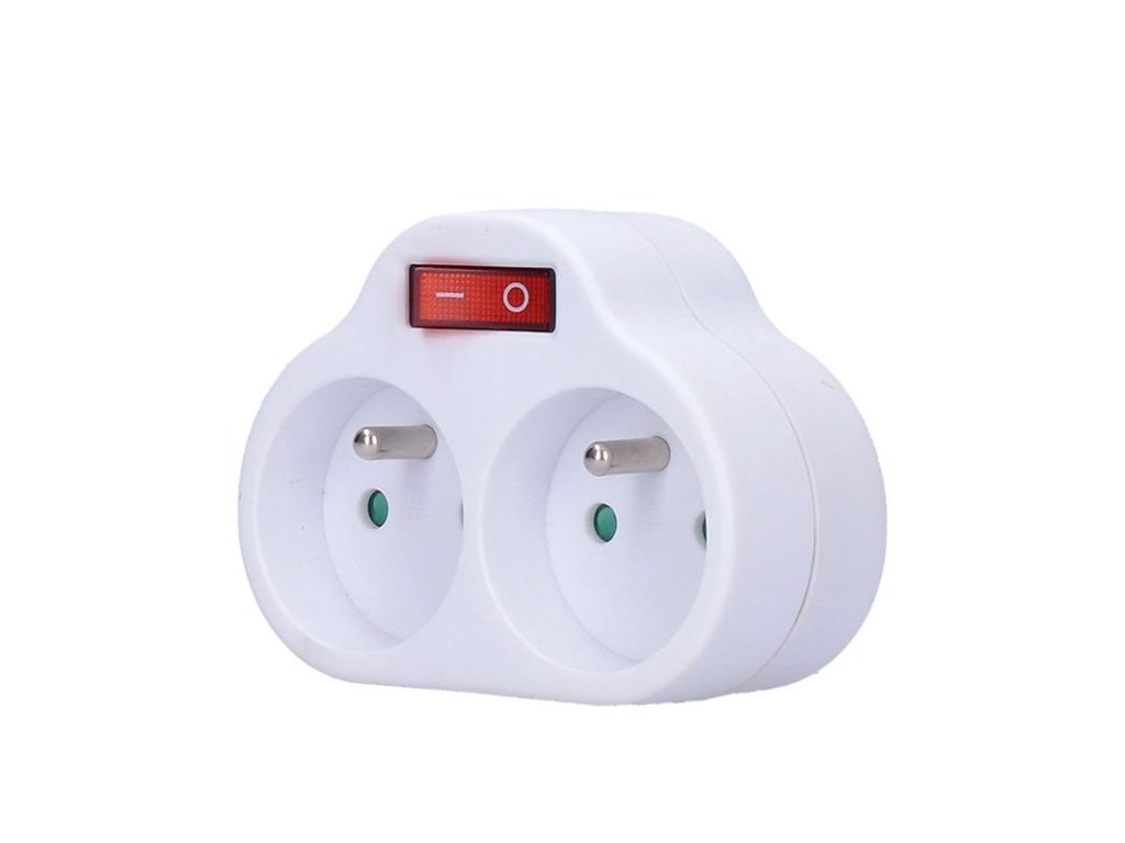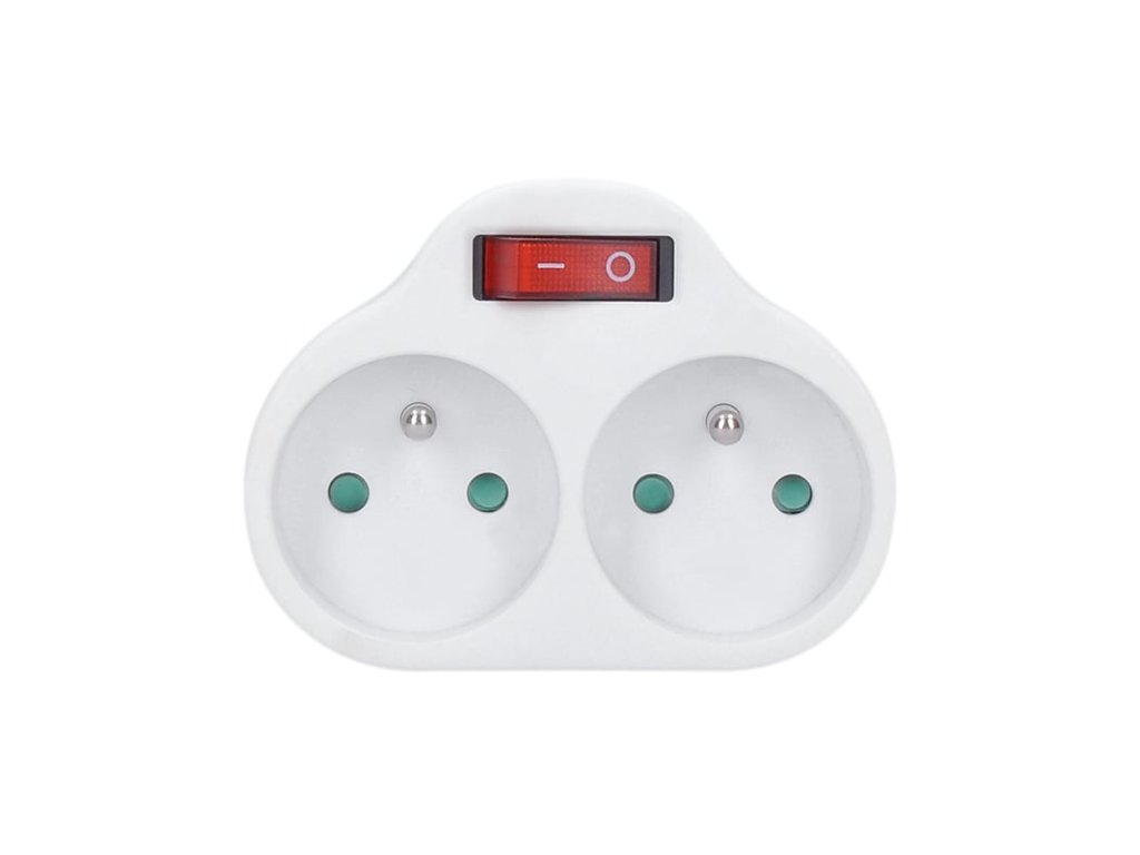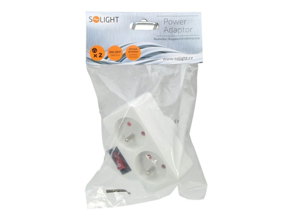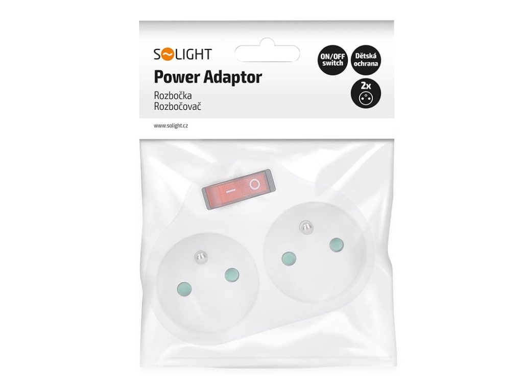 Solight rozbočka, 2x 10A, bílá, vypínač
