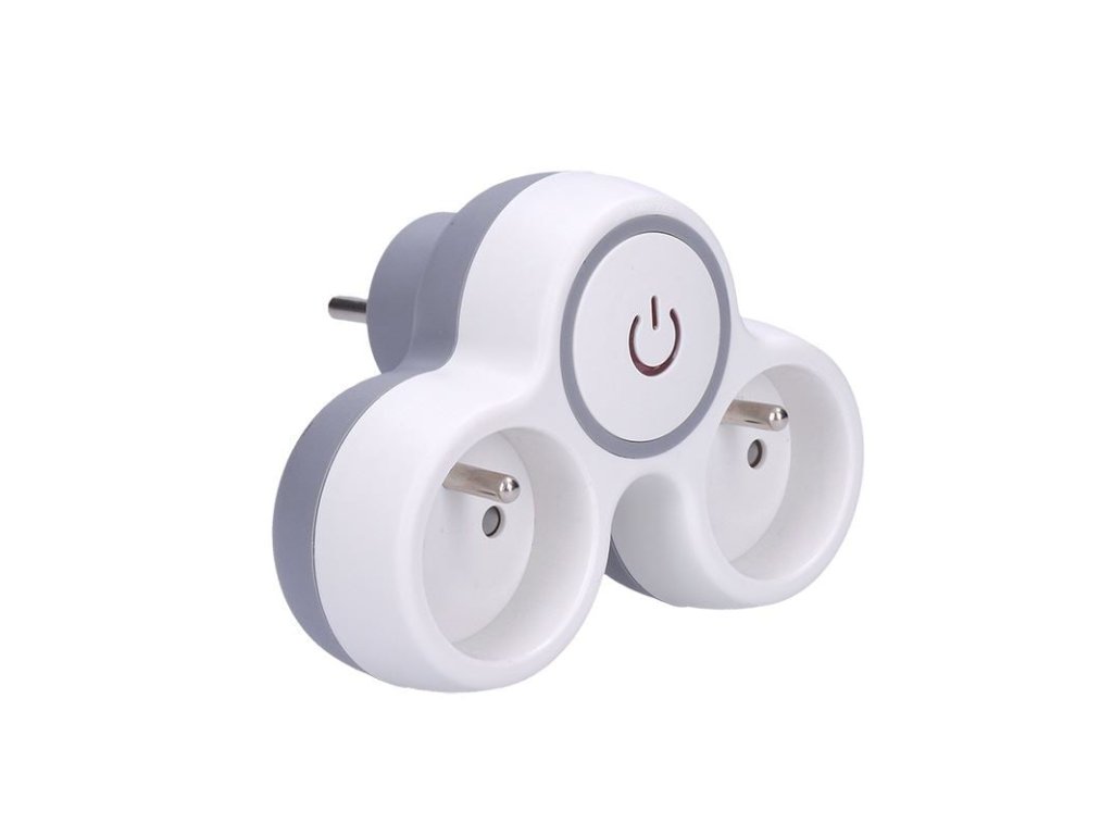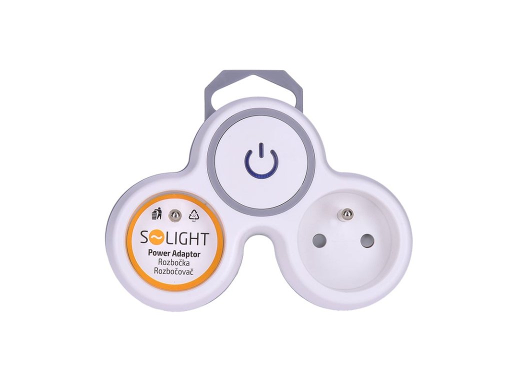 Solight rozbočka, 2x 10A, bílá-šedá, vypínač