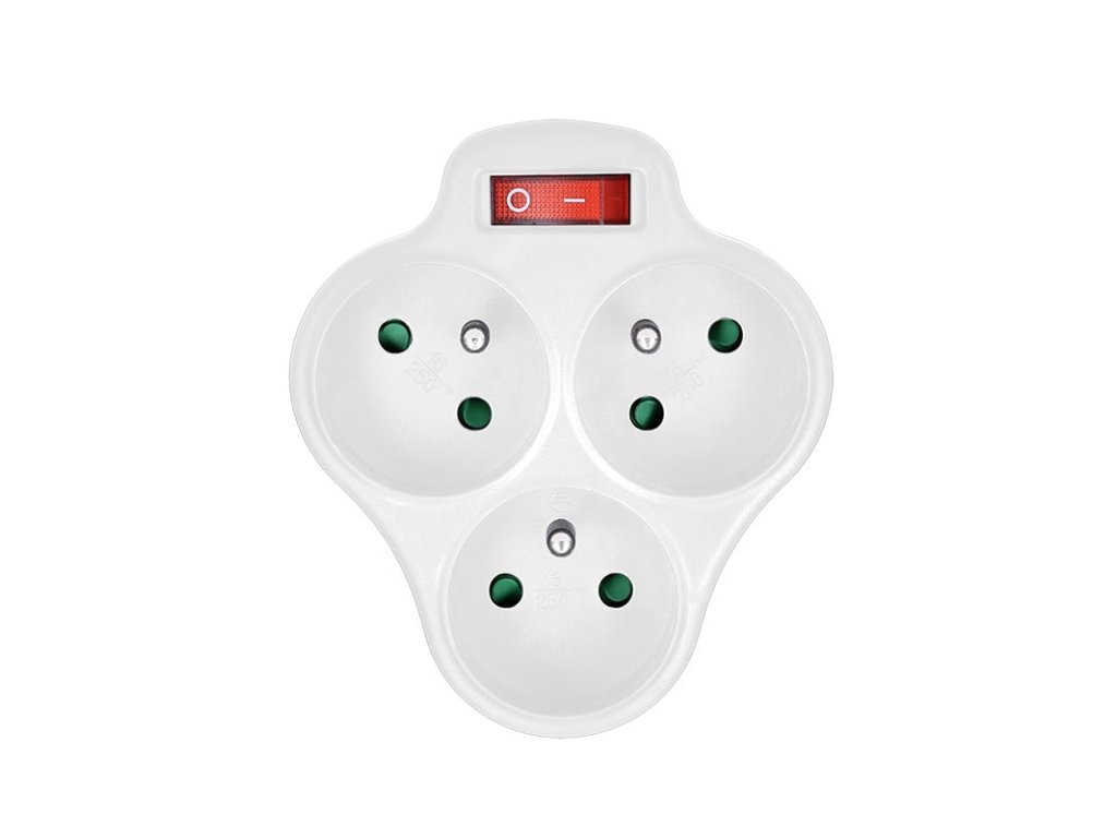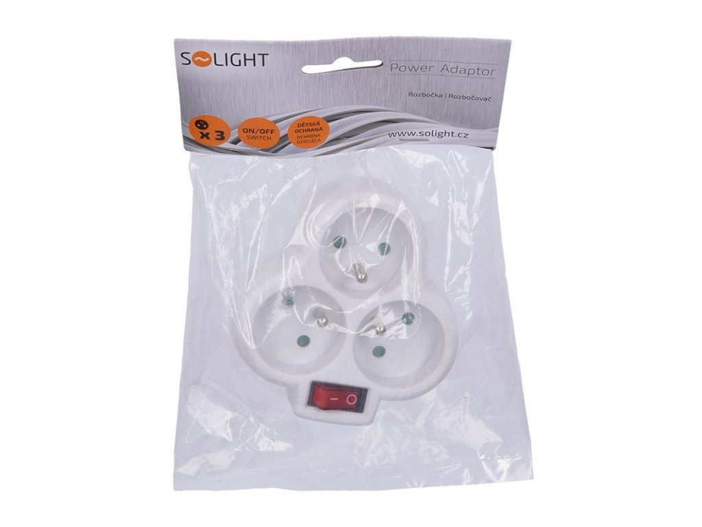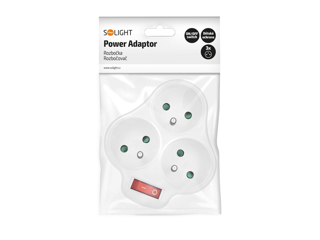 Solight rozbočka, 3 x 10A, bílá, vypínač