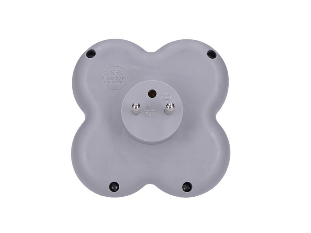 Rozbočka s dětskou pojistkou, výstup 3x 15A, max. 3500W.