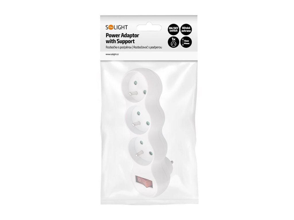 Solight rozbočka s podpěrou, 3 x 10A, bílá, vypínač