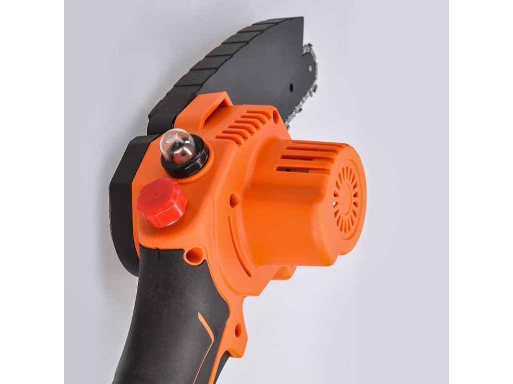 Ruční akumulátorová řetězová pila s bezuhlíkovým motorem a ruční olejovou pumpou pro snadné mazání řetězu. Hliníková lišta, nízká hmotnost (1,1 kg) a snadné ovládání a údržba činí tuto pilu ideální pro prořezávání stromků a keřů. Délka lišty 100 mm, řezná rychlost 5 m/s. Součástí balení: plastový kufr, 1x baterie 2Ah, nabíječka, šroubovák, klíč na dotažení a návod. Pojistka proti náhodnému spuštění a zábrana proti kontaktu s řetězem pro bezpečnost. Napájení Li-Ion baterie 21V 2Ah, doba nabíjení cca 150 min. Rozměry s baterií: 36 × 12 × 10,5 cm.