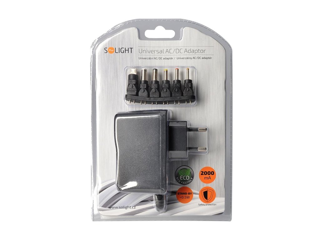 Solight univerzální síťový adaptér 2000mA, stabilizovaný, výměnné konektory