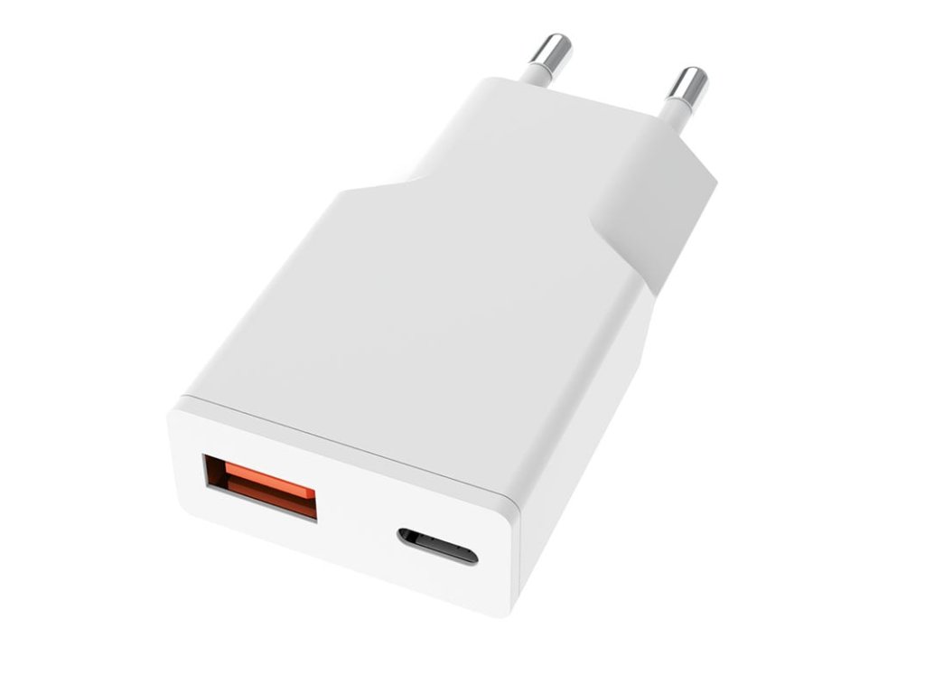 Univerzální napájecí adaptér USB A+C s výkonem 20W podporující rychlé nabíjení QC 3.0 a PD fast charge. Při použití jednoho výstupu je maximální výkon 20W, při zapojení obou výstupů je celkový výkon 20W. Vstup: AC 100 – 240V, 50/60Hz, 0.6A max. Výstup 20W max. Ochrana proti zkratu a nadproudová ochrana.
