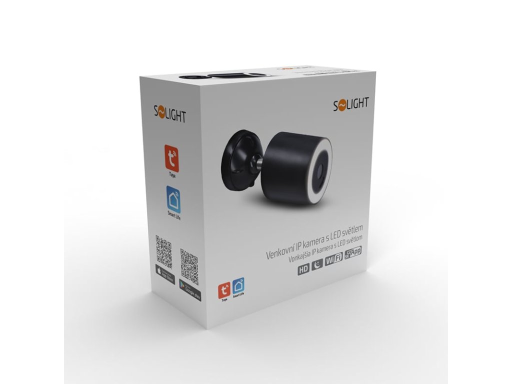 Solight venkovní IP kamera s LED světlem - Full HD rozlišení 1080p, 24/7 živý video přenos, provozní teplota -20°C do +45°C, Připojení přes Wi-Fi, Detekce pohybu, Upozornění na mobil, rozlišení snímače: 3 Mpx, max. velikost karty: 128 GB