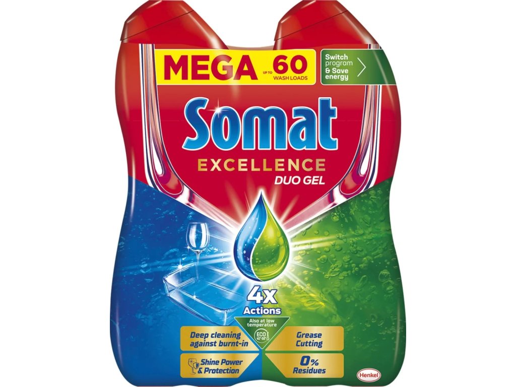 Somat Excellence Duo gel do myčky nabízí ochranu proti skvrnám od vodního kamene. Nejlepší složení Somat gelu zajišťuje účinné čištění a brilantní lesk i při nízkých teplotách na eco a krátké programy. Jedinečná kombinace dvou doplňujících se receptur poskytuje hloubkové čištění připálenin a silné odmašťovací účinky. Pro okamžitý efekt a extra lesk nádobí. I při nízkých teplotách na eco a krátké programy zanechá za sebou oslnivě čisté nádobí bez usazenin. Můžete ušetřit vodu a až 20 % energie přepnutím na eco program s nízkou teplotou nebo krátký program s nízkou teplotou při zachování excelentní čistoty a lesku. Tento gel je vaším spolehlivým partnerem v boji proti skvrnám od vodního kamene, poskytujícím vám vynikající výsledky a šetřícím životní prostředí. Nechte Excellence Duo gel do myčky od značky Somat pracovat za vás a užijte si bezstarostné mytí nádobí s dokonalým výsledkem každý den.