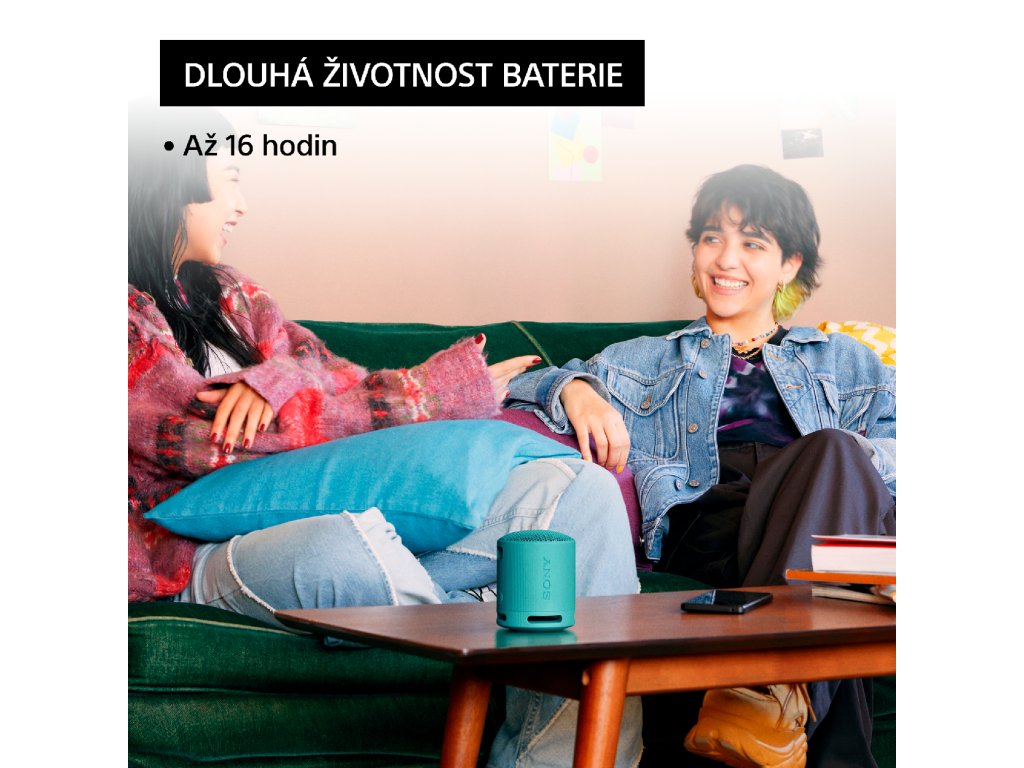 Lehký a kompaktní • Vyroben z recyklovaných plastů • Bohatý zvuk s Extra Bass • Odolnost IP67 • Odnímatelné poutko • Až 16 hod. výdrž baterie • BT 5.3 (dosah 30 m) • Stereo párování • Hands-free • 46mm měnič (5W) • USB-C nabíjení