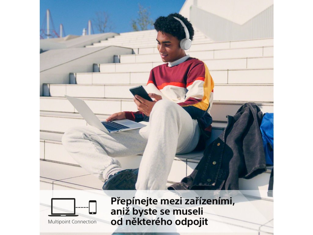 Bezdrátové spojení díky Bluetooth 5.2. Dosah cca 10 m, frekvence 2,4 GHz. DSEE funkce pro vylepšení nekvalitních zvukových stop, podpora aplikace Headphones connect, 360 Reality Audio.