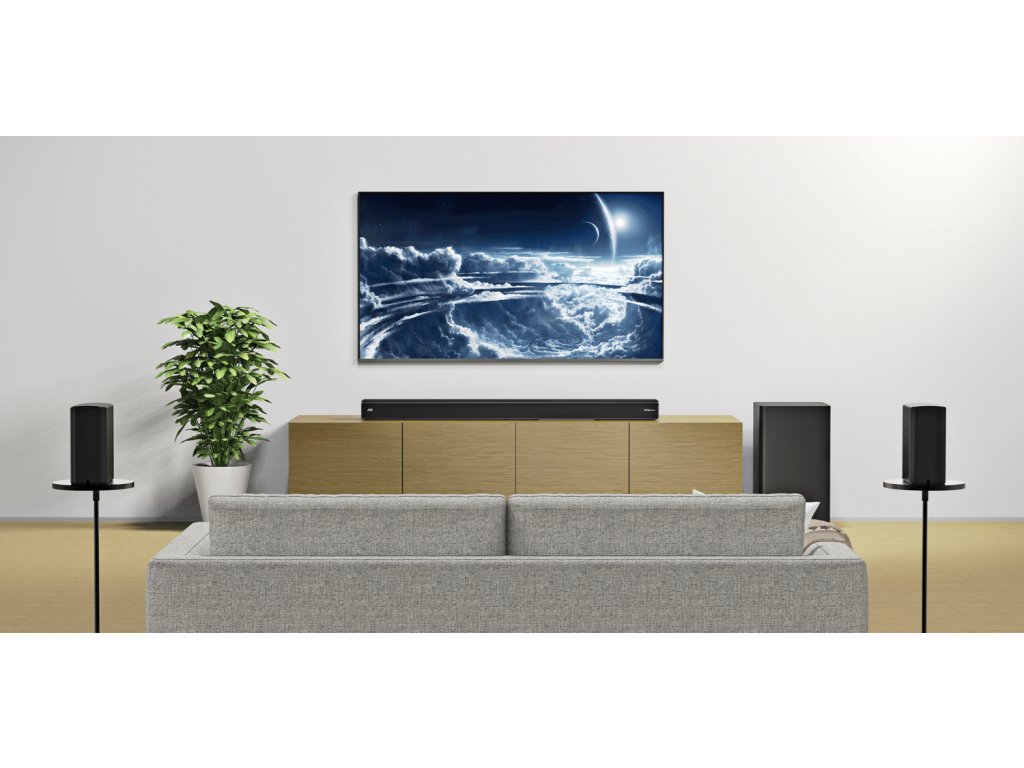Soundbar s bohatou konektivitouKdo plánuje používat soundbar JVC s vícero různými zařízeními, ocení širokou škálu audio vstupů. Nejcennějším je vždy HDMI vstup s funkcí eARC, skrze který lze soundbar snadno propojit k televizi. Funkce HDMI CEC má navíc na starost, aby se soundbar zapnul či vypnul spolu s televizí a zároveň šla obě zařízení ovládat dálkovým ovladačem od televizoru. Kromě toho lze využít optický a koaxiální vstup. Nechybí ani USB vstup pro přehrávání z externího zařízení nebo AUX in vstup pro připojení radiopřehrávače.