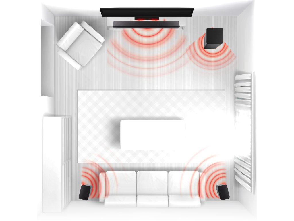 Užijte si perfektní audio5.1.2 kanálový systém s bezdrátovým subwooferem a s podporou Dolby Atmos nabízí pohlcující zvukový zážitek. Díky dvěma kanálům vytváří 3D zvuk, který vás obklopí nejen z boků, ale i shora, což zvyšuje realistický dojem z filmů a hudby. Bezdrátový subwoofer poskytuje silné basy a zároveň umožňuje flexibilní umístění bez kabelů.Tento JVC soundbar je ideálním řešením pro ty, kteří chtějí snadnou instalaci a špičkový prostorový zvuk bez složitosti tradičních domácích kin. Kinosál z obývacího pokojeChcete doma zažívat atmosféru jako z kina? Tak si připravte popcorn, protože technologie Dolby Atmos převede zvukový signál na prostorový zvuk. Ten vás obklopí ze všech stran, vtáhne do děje a vy se rázem budete cítit jako byste seděli uprostřed kinosálu.