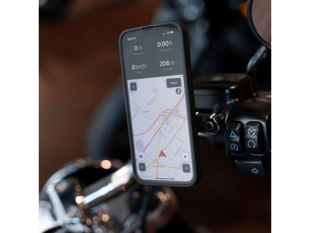 Clutch Mount Pro má otočnou naklonitelnou hlavu, takže váš smartphone může být vždy perfektně a bezpečně umístěn ve vašem zorném poli a umožní vám snadný přístup k mapám a aplikacím.