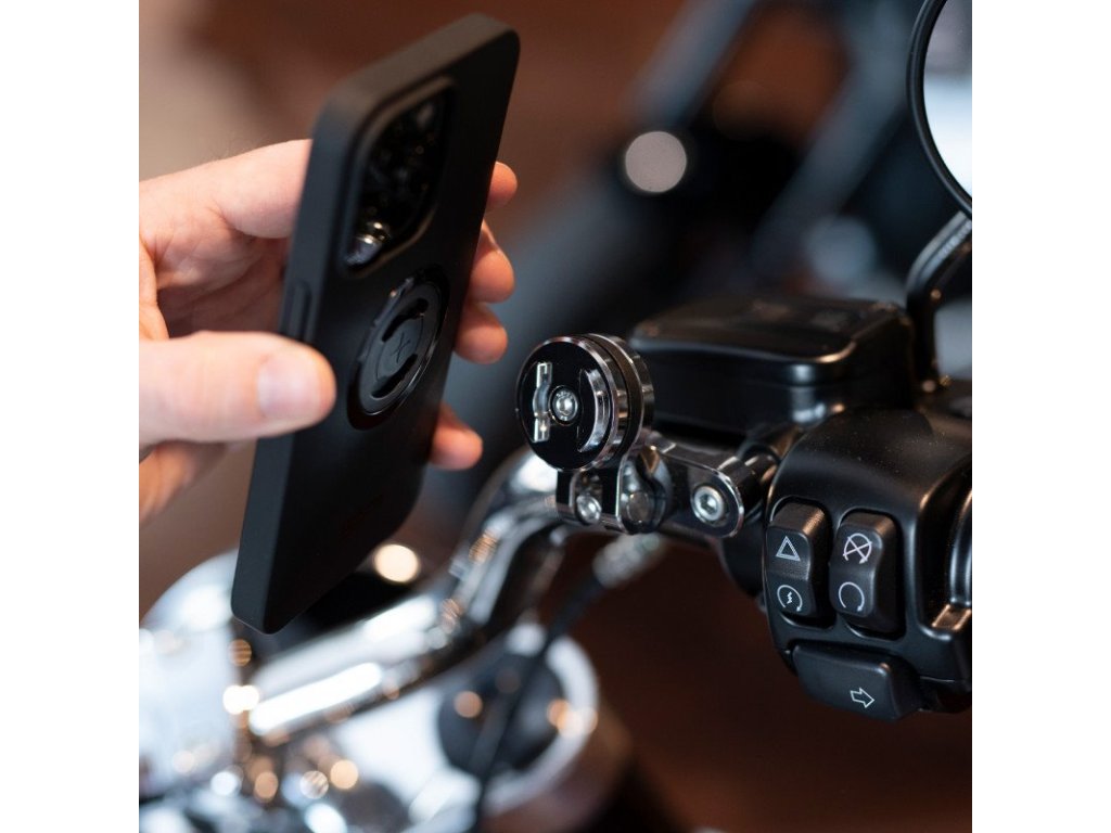 Stačí Clutch Mount našroubovat k držáku spojky nebo brzdy, poté pouze přiložíte SP obal na telefon nebo někreré z univerzálních řešení a otáčením o 90°ve směru hodinových ručiček uzamknete váš smartphone v držáku.