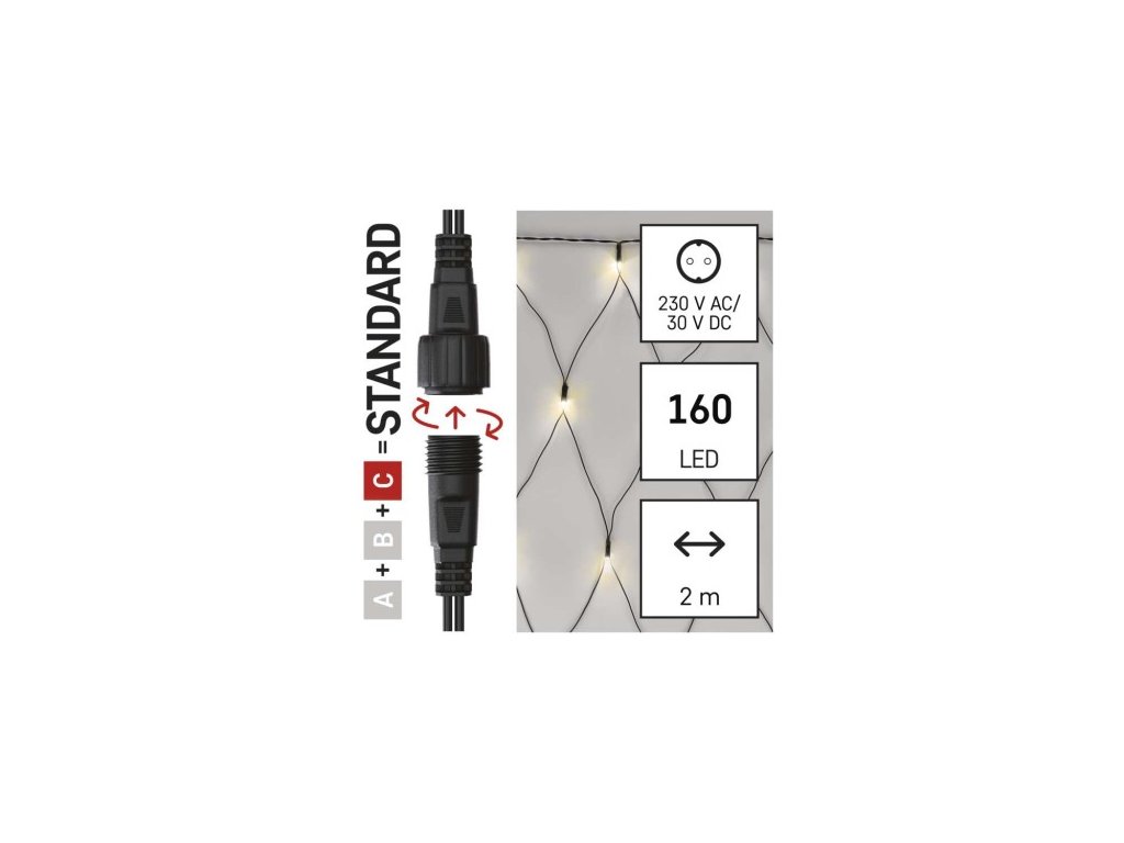 Standard LED spojovací vánoční řetěz – síť, 1,5x2 m, venkovní, teplá bílá
