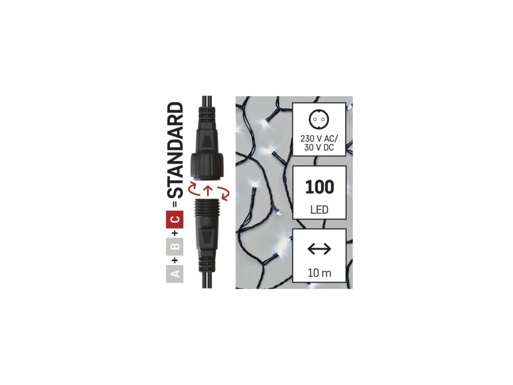 Standard LED spojovací vánoční řetěz, 10 m, venkovní i vnitřní, studená bílá