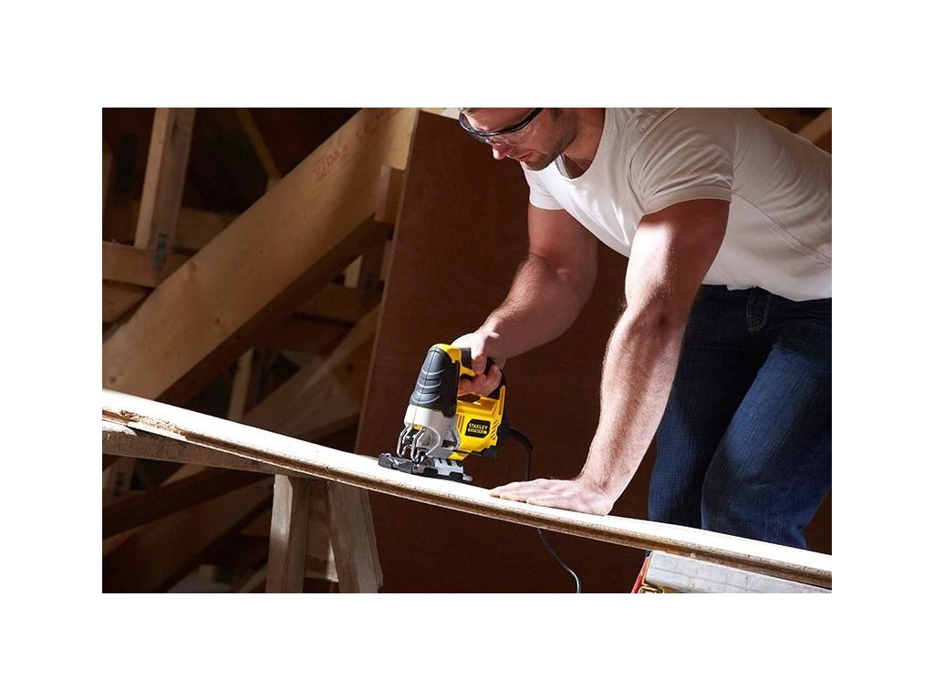 Přímočará pila s předkmitem 710W, počet zdvihů naprázdno 0-3200/min., délka zdvihu 20 mm, variabilní rychlost, maximální prořez dřevo/hliník/ocel: 85/15/10mm, upínání pilového listu s uchycením typu U a T bez použití nářadí, nastavení předkmitu 3 stupně