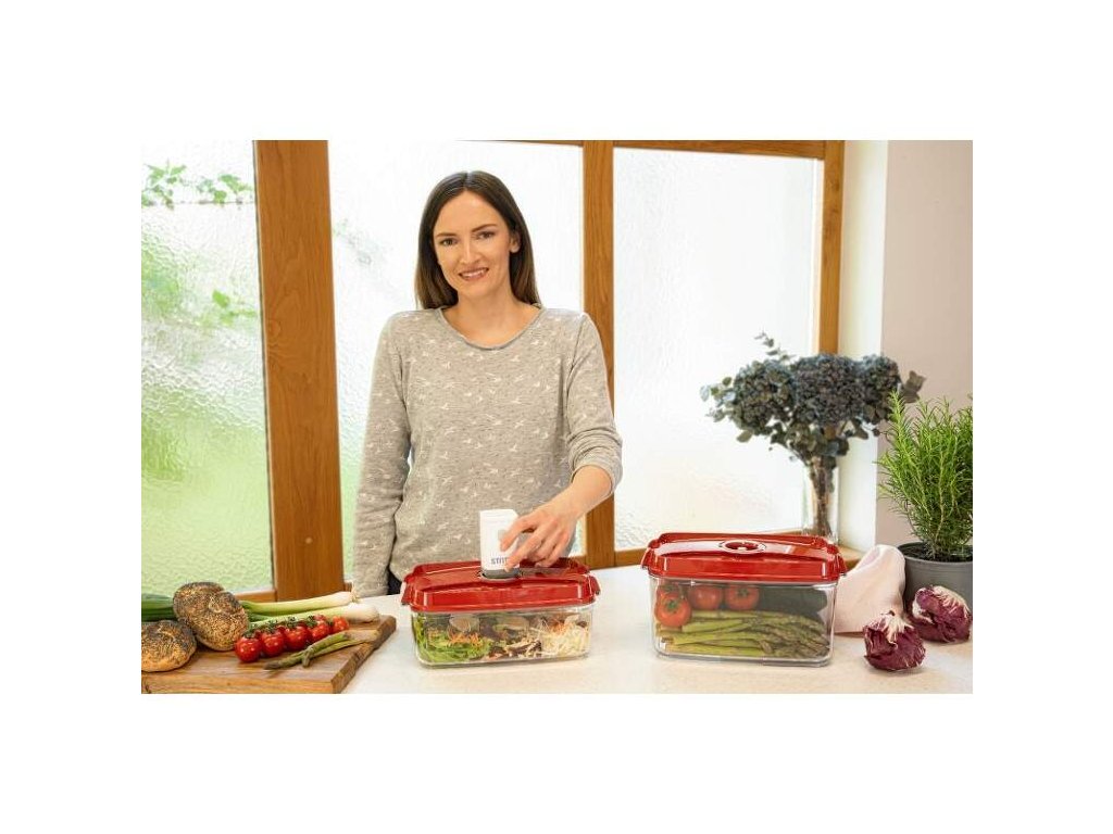 Praktické vakuovací nádoby Status lze koupit jednotlivě nebo v sadách. Použijete je pro nepřeberné množství tuhých i tekutých potravin, které jsou citlivé na vzduch. Uchování ve vakuu zachová živiny, zpomalí růst bakterií a brání předčasné oxidaci. Takto uložené potraviny zůstanou až čtyřikrát déle čerstvé. Dózy Status jsou vyrobeny ve Slovinsku.