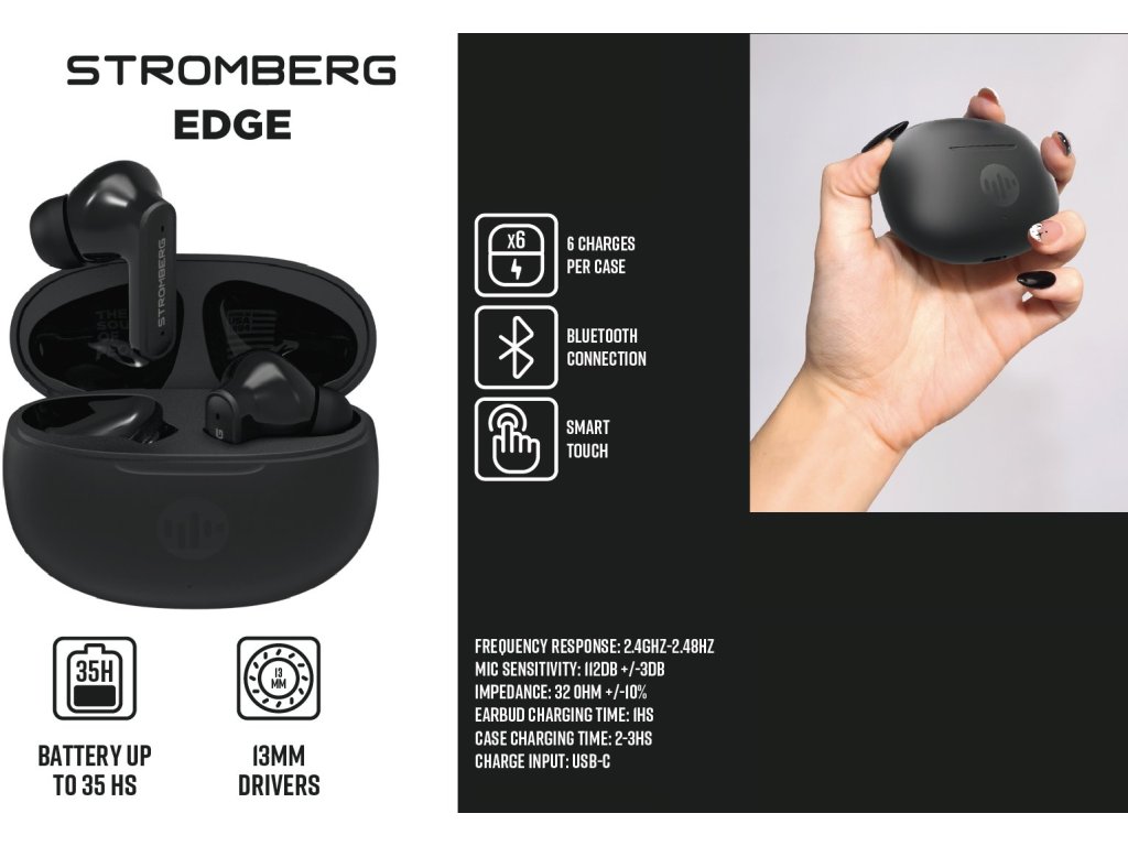 Stromberg EDGE – TWS sluchátka s 13mm měniči, dotykovým ovládáním, výdrží 35 h, USB-C nabíjením a stabilním Bluetooth připojením.