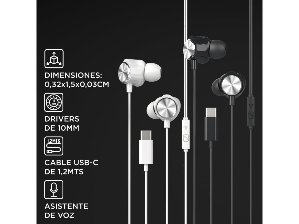 Stylová špuntová sluchátka s mikrofonem v elegantní černé barvě nabízí čistý zvuk díky 10mm měničům a pracovní frekvenci 20–20 000 Hz. Kabel o délce 1,2 m s USB-C konektorem zajišťuje snadné připojení k moderním zařízením. Díky ovládacímu tlačítku na kabelu vedle mikrofonu můžete pohodlně přijímat hovory nebo ovládat přehrávání. Ideální pro každodenní použití doma i na cestách.