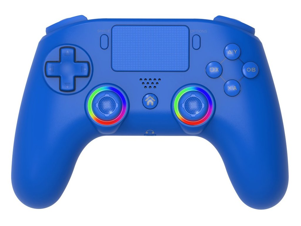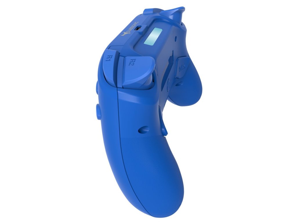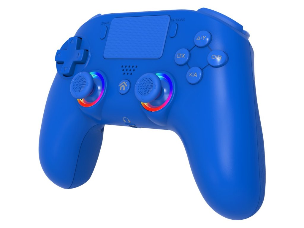 Gamepad, bezdrátový, pro PC a PS4, RGB podsvícení, 15 tlačítek, D-pad, Bluetooth, audio konektor, USB-C, modrý