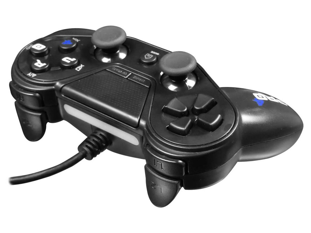 Drátový ergonomický gamepad určený pro počítač nebo herní konzole PS4 a PS3. Disponuje 8směrným D-padem, klikacím předním panelem a 17 tlačítky, se kterými budete mít všechny herní funkce vždy na dosah ruky. Zaoblení analogových páček i tlačítek spouště zajistí precizní kontrolu v každé situaci. Připojení lze jednoduše realizovat pomocí USB konektoru.