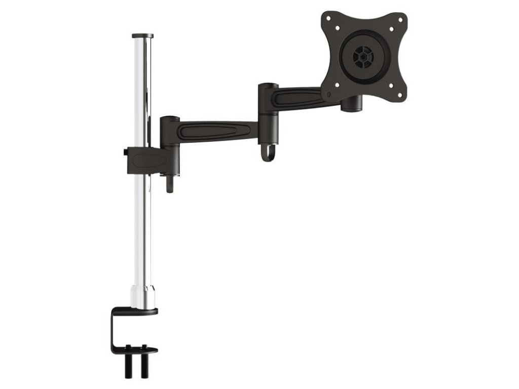 Držák na stůl pro montáž monitorů a TV s úhlopříčkou 13" - 27". Maximální zatížení tohoto držáku je 15 kg. Držák dovoluje náklon 15°, otočení 180° a Pivot 360°. Upevnění držáku je možné na pracovní desku s tloušťkou v rozmezí 15 - 47 mm. Rameno dosahuje délky 439 mm.
