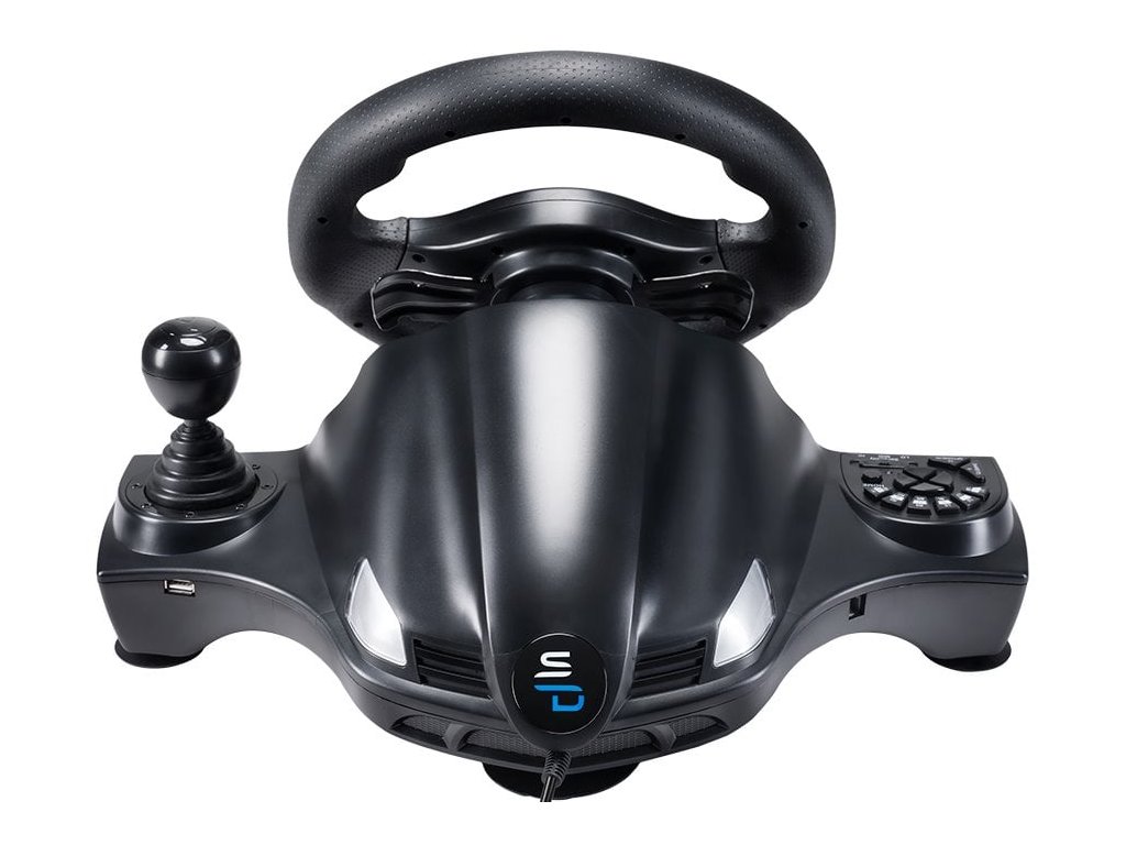 Set SUPERDRIVE GS750 obsahuje vše pro komplexní řízení virtuálního vozu. Tato sada obsahuje volant, pedály a řadicí páku, abyste dosáhli maximálně autentického zážitku ze řízení vozu. Volant disponuje 270° úhly otáčení, díky čemuž se přizpůsobí každému jízdnímu stylu. Nezáleží na tom, jestli jedete střídmě a na jistotu, nebo se snažíte prchnout před policií. Nastavitelné úrovně citlivosti vám umožní hrát v arkádovém stylu i v plné simulaci. Základna je na spodní straně vybavena přísavkami, díky čemuž volant s řadicí pákou pevně drží na svém místě.