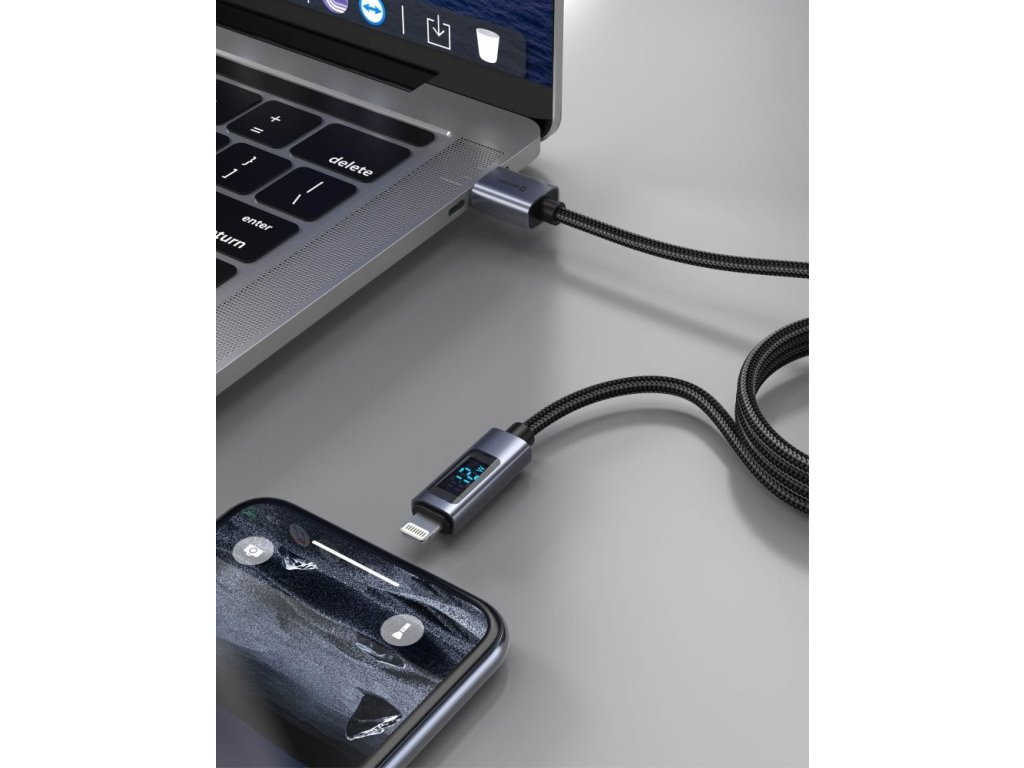 Kabel podporuje technologii Power Delivery, která optimalizuje nabíjecí proces a zajišťuje, že vaše zařízení bude nabito rychle a efektivně. Aktivní režim Power Delivery je indikován na displeji.