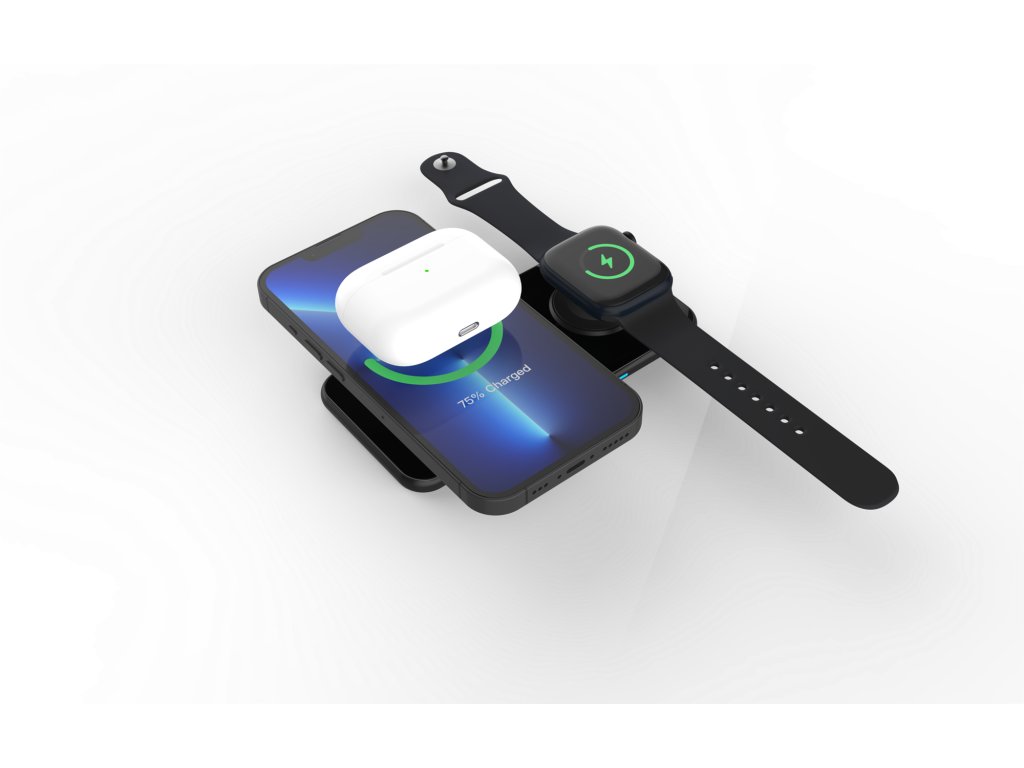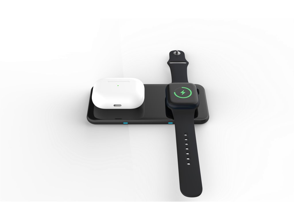 Na větší dobíjecí ploše lze dobíjet Smartphone výkonem až 10W nebo Airpods výkonem až 3,5W. Apple Watch se dobíjí na menší dobíjecí ploše výkonem až 3,5W