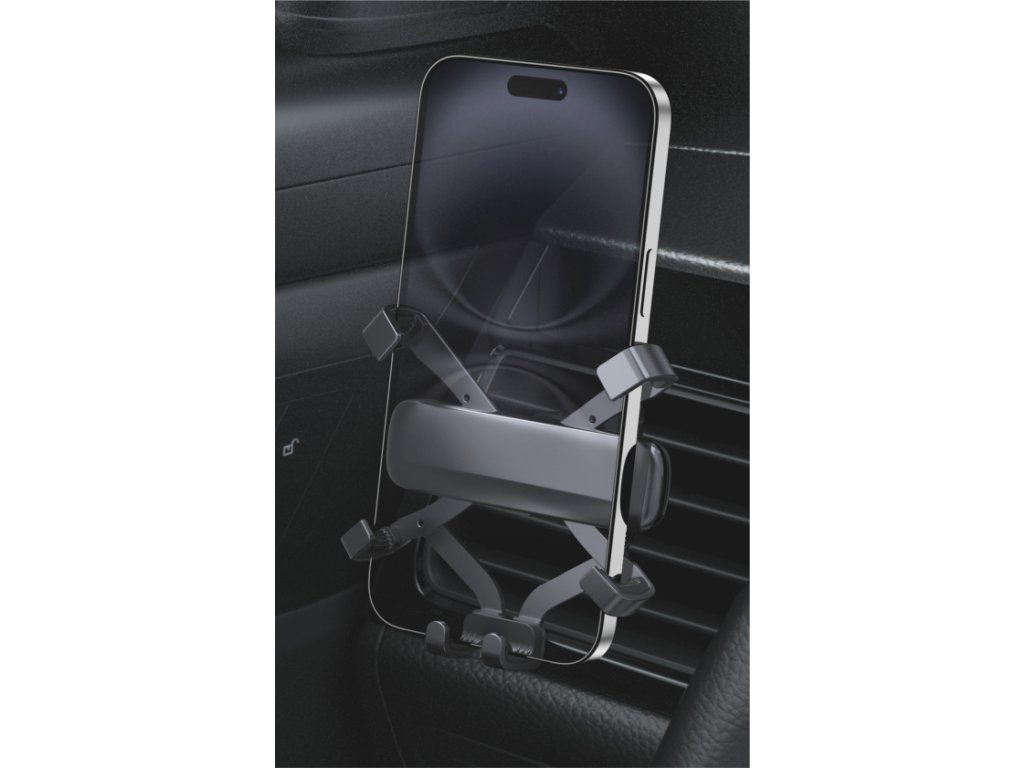 Elegantní a odolný hliníkový držák využívá gravity mechanismus, díky kterému se telefon automaticky upevní vlastní vahou. Stačí jej vložit do držáku a boční ramena jej pevně uchytí.