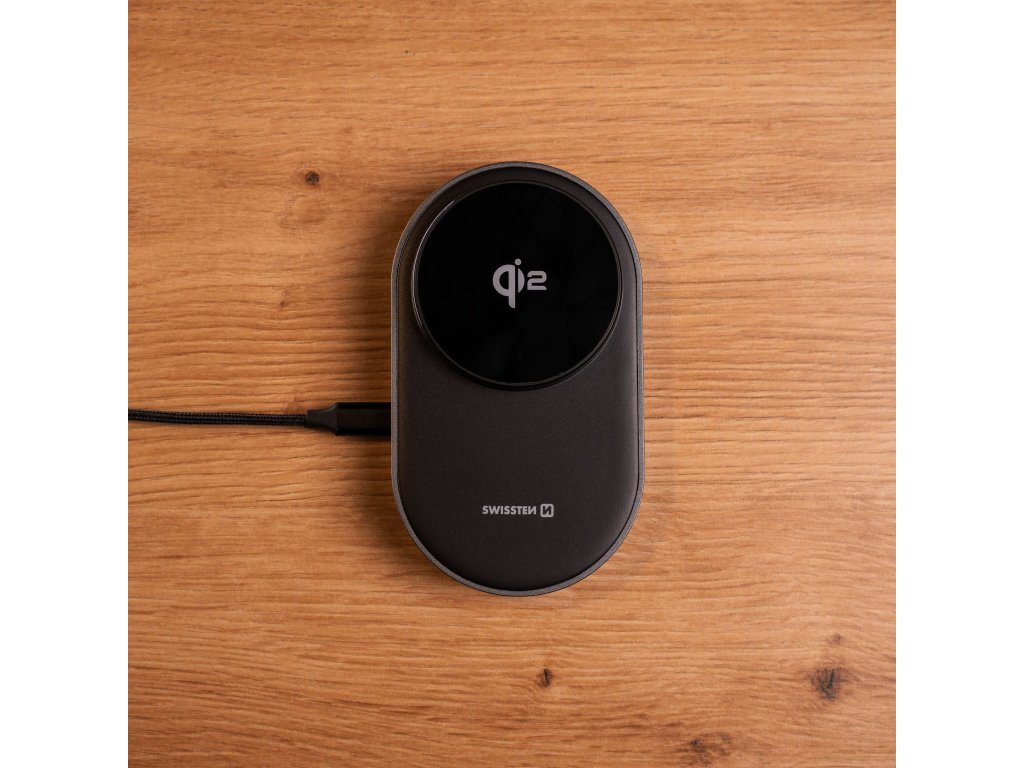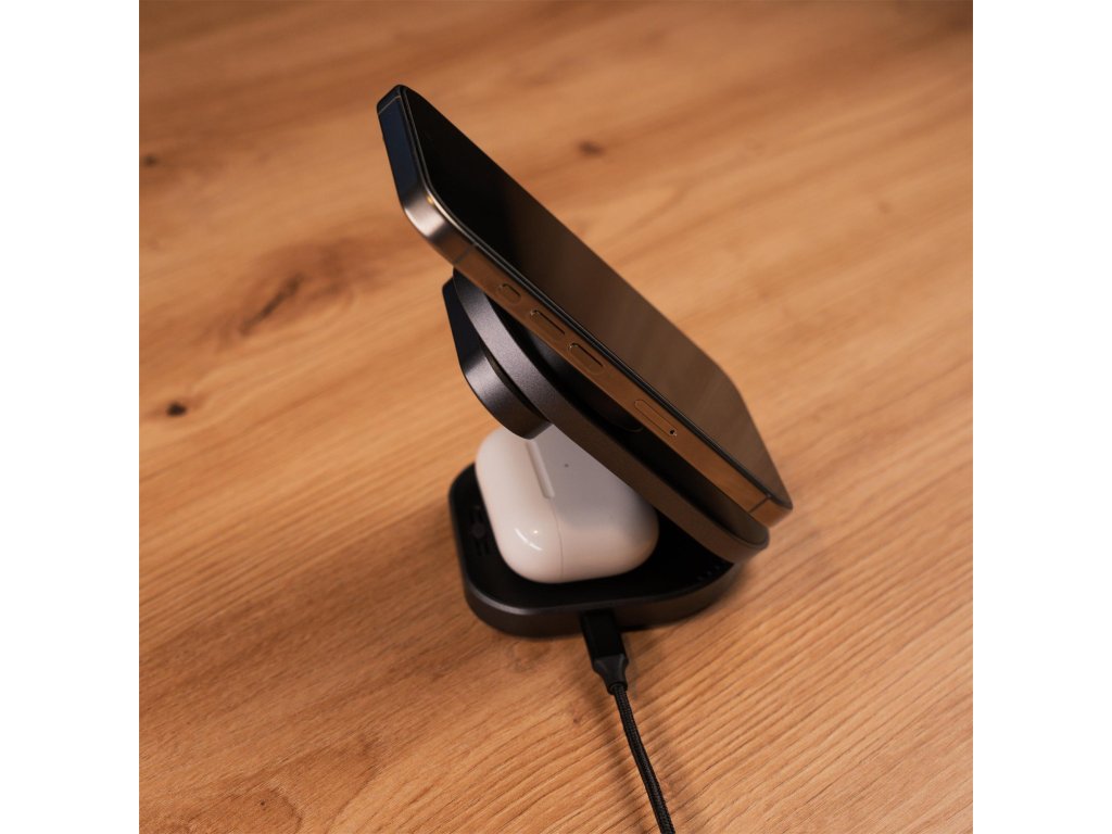 Kompatibilita: iPhone 12 a novější, Samsung S23–S25, zařízení kompatibilní s Qi2, Apple Watch, AirPods s bezdrátovým pouzdrem