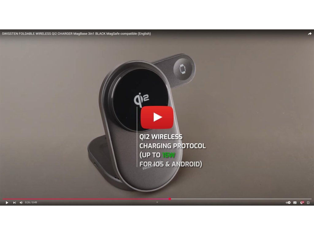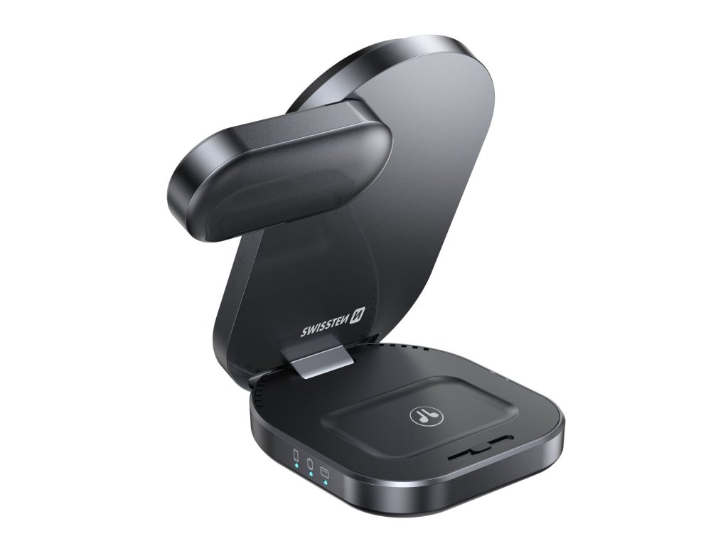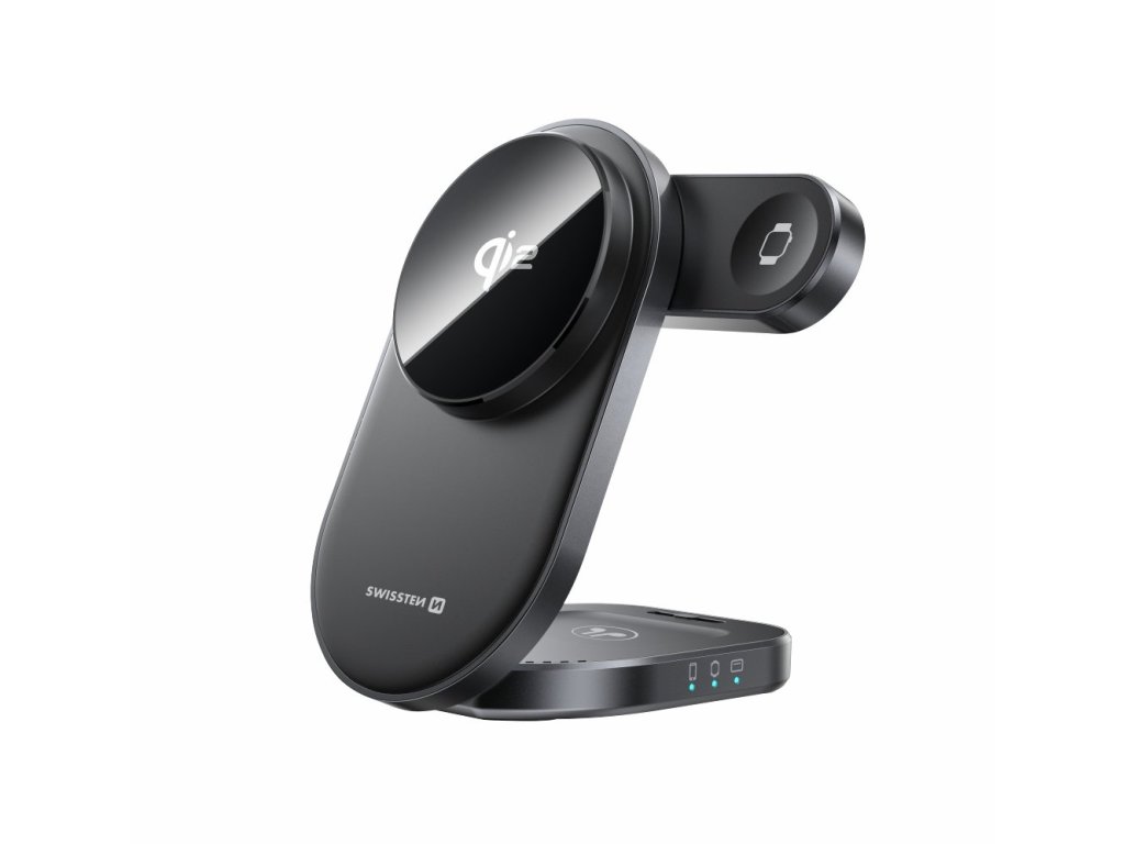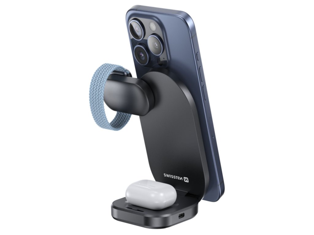 SWISSTEN SKLÁDACÍ BEZDRÁTOVÁ Qi2 NABÍJEČKA MagBase 3v1 ČERNÁ (kompatibilní s MagSafe)