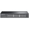 Gigabitový switch 16× RJ45, VLAN, QoS, plug-and-play, Omada cloud správa, 32 Gb/s, tichý kovový design, stolní nebo rack montáž.