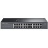 Gigabitový switch 24× RJ45, VLAN, QoS, plug-and-play, Omada cloud správa, 48 Gb/s, tichý kovový design, stolní nebo rack montáž.