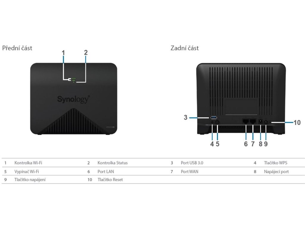 Inteligentní zařízení Synology Mesh Router MR2200ac kompletně pokryje signálem sítě Wi-Fi domov i kancelář. Zařízení MR2200ac, založené na technologiích Tri-Band a MU-MIMO, dokáže zajistit, že vaše zařízení budou vždy používat tu nejrychlejší šířku pásma zajišťující optimalizaci výkonu a budou se vždy spolehlivě připojovat bez jakékoliv prodlevy. Navíc můžete v rámci modulárního systému Mesh využívat ten nejlepší a bezproblémový roaming Wi-Fi s jediným názvem Wi-Fi. Funkce Safe Access zajišťuje jednoduchou správu rodičovské kontroly a současně brání všem pokusům o škodlivé proniknutí do sítě. Na zařízení Synology MR2200ac se vztahuje dvouletá omezená záruka společnosti Synology.