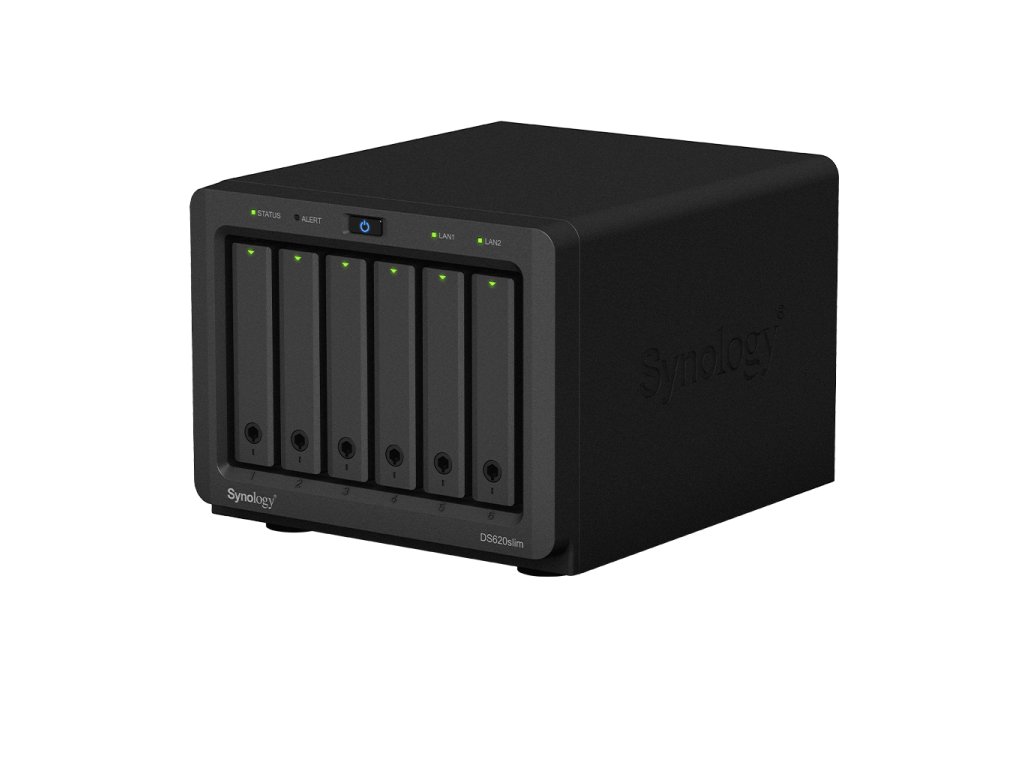 DS620slim je mini 6ti místné NAS se stylovým designem šasi, který dokonale ladí s moderními pracovišti nebo byty. DS620slim, podporující technologii okamžitého snímkování a transkódování videa, je všestranným řešením správy souborů, které splňuje potřeby profesionálů v oblasti pokročilé ochrany dat a vysoce kvalitního streamování médií.