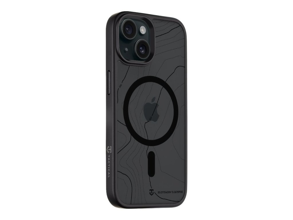 Kryt pro Apple iPhone 15 s vestavěným magnetem pro MagSafe příslušenství, s topografickou grafikou, černý