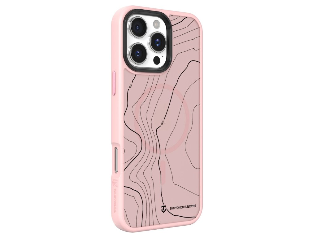Kryt pro Apple iPhone 16 Pro Max s vestavěným magnetem pro MagSafe příslušenství, s topografickou grafikou, růžový