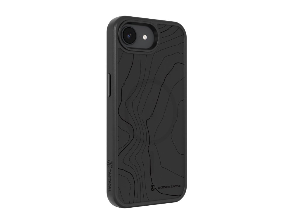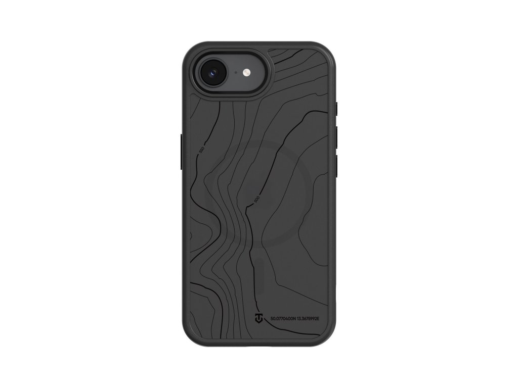 Kryt pro Apple iPhone 16e s vestavěným magnetem pro MagSafe příslušenství, s topografickou grafikou, černý