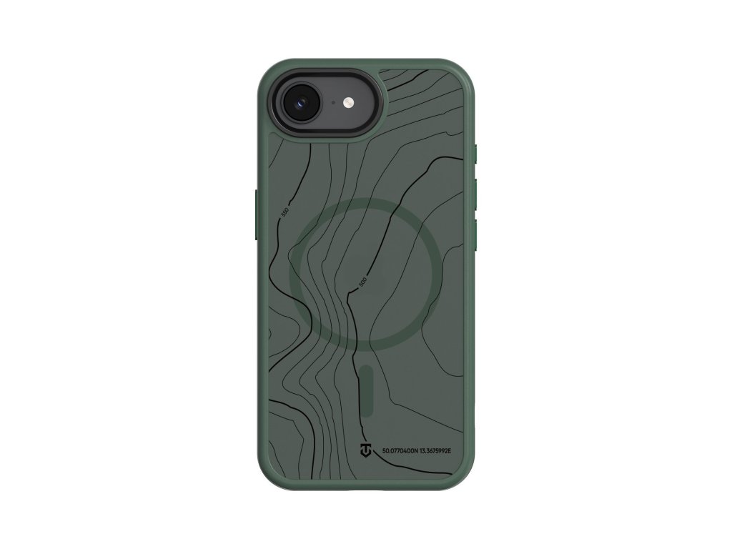 Kryt pro Apple iPhone 16e s vestavěným magnetem pro MagSafe příslušenství, s topografickou grafikou, zelený