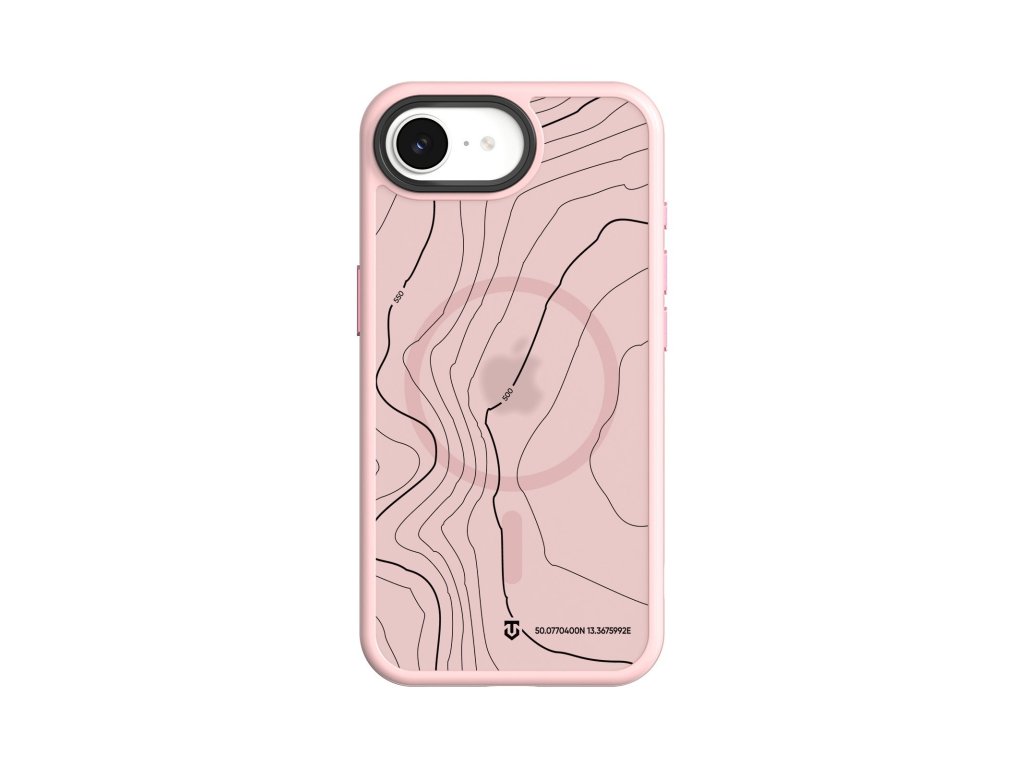 Kryt pro Apple iPhone 16e s vestavěným magnetem pro MagSafe příslušenství, s topografickou grafikou, růžový